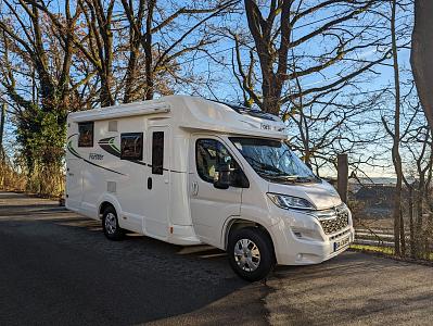 Neuwertiger und geräumiger Teilintegrierter von FORSTER mit Längsbetten hinten und einem elektrischen Hubbett vorne, große Heckgarage und Anhängekupplung. Entdecken Sie das neue Gefühl von Komfort.