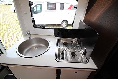 - großer Kühlschrank (135Liter) inkl. Gefrierfach und Getränkebox mit automatischer Energiewahl (12V, 230V, Gas)