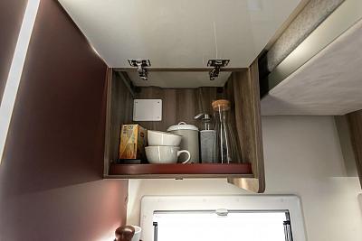 - großer Kühlschrank (135Liter) inkl. Gefrierfach und Getränkebox mit automatischer Energiewahl (12V, 230V, Gas)
