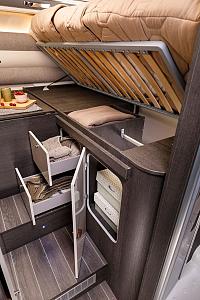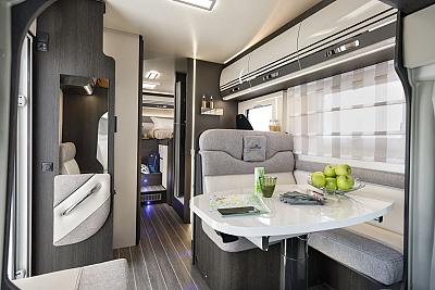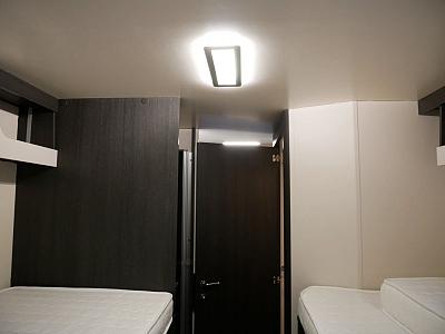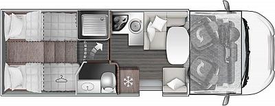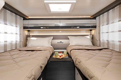 - Längsbetten / Einzelbetten hinten (2,16m x 1,12m und 2.10m x 1,10m ), kann als großes Bett umgebaut werden