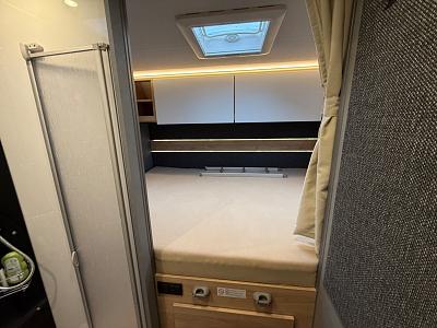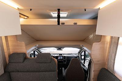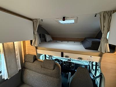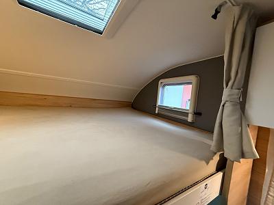 Zwei Schlafplätze finden sich im großzügigen Alkoven. Mit 210 x 165 cm Liegefläche bietet er mehr als genug Platz und mit seitlichem Fenster und großer Dachluke auch extra viel Frischluftzufuhr.