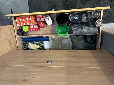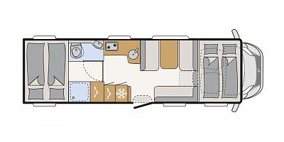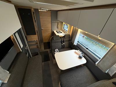 Groß, komfortabel und perfekt ausgestattet das ist der XL Family. Der Materialmix aus weißen Dachschrankklappen, hellem Holzdekor und den anthrazitfarbenen Polstern sieht schick aus und erzeugt das Gefühl in einer modern eingerichteten Ferienwohnung unterwegs zu sein. Auch die immense Stehhöhe von 209 cm trägt dazu bei, dass keinerlei Engegefühl auftritt selbst bei Vollbelegung mit sechs Personen.