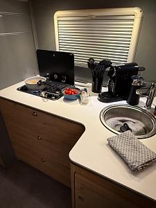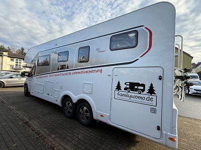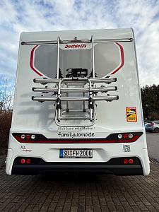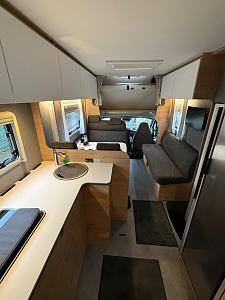 Vollständiges Inventar ist selbstverständlich, dazu gibt es einen eingebauten WLAN Router/Verstärker, Smart TV, Dachklimaanlage, vollautomatische Hubstützenanlage, Anhängerkupplung, 4 fach Fahrradträger, beheizter Doppelboden u.v.m.