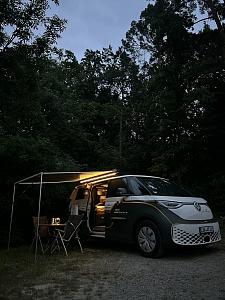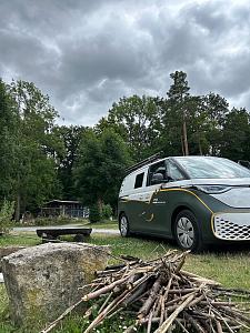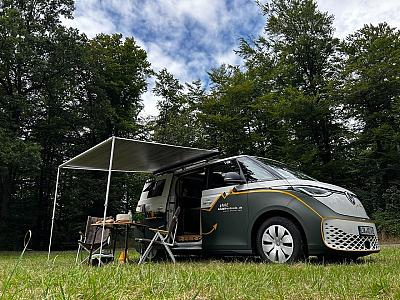 ID.Buzz mit Wohnmobilzulassung. E-Campervan. Selbstfahrervermietfahrzeug. Starlink. Smart-TV (Netflix, Prime, ...). Markise. Trinkwasseraufbereitungsanlage. Kühlbox mit separatem Eisfach. Solarzelle. Aufbaubatterie 2kWh. Induktionskochfeld 1700W. Spüle inkl. Frischwasser- und Abwassertank. Campinggrundausstattung an Board. Klimaanlage. Standheizung und Standklima (aufgrund E-Auto). Zusatzausstattung buchbar (Vorzelt, Außenküche, Heckzelt, zusätzliche Kühlbox, ...). Trockentrenntoilette (Trelino M). 300 km Reichweite. Ladekarte für europaweite Nutzung On-Board (EnBW, ...). Sonnen- und Sichtschutz für Fensterscheiben.