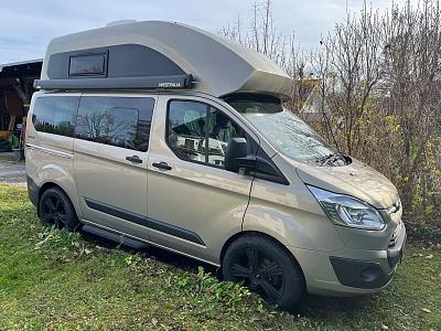 Denn mit dem Ford Nugget "Froggy" mit dem festen Hochdach hast du tatsächlich auf PKW-Länge und -Breite alles, was das Campervan-Herz braucht, dabei: