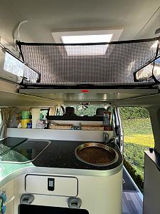 - Dachfenster und Seitenfenster oben sowohl mit Insektenschutz als auch Verdunklung