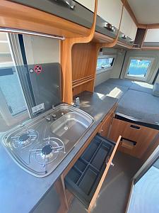 Der Pössl Summit 600 Plus mit seinen 5,99m hat ein großzügiges und offenes Raumkonzept. Kompakt und wendig mit viel Stauraum. Ideal für zwei Personen oder der kleinen Familie. Top ausgestattet mit einem großen Doppelbett (ca.196x160), das Schwenkbad mit Dusche und WC, Küche mit einem 90l Kühlschrank + Frostfach, 2 Flammen Gasherd, Markise, Rückfahrkamera, Klimaanlage, Anhängerkupplung, Naviceiver und vieles mehr. Zudem ist Iso-Fix vorhanden.