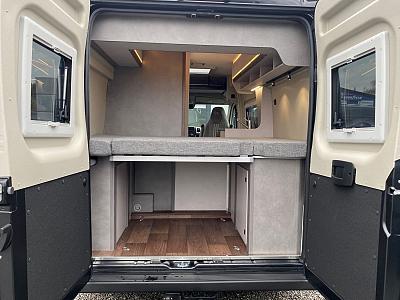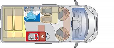 Er verfügt über ein großes Doppeltbett im Heck ca. 196x120x141.