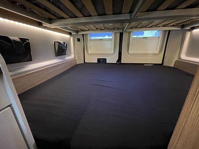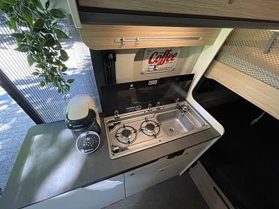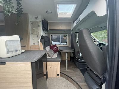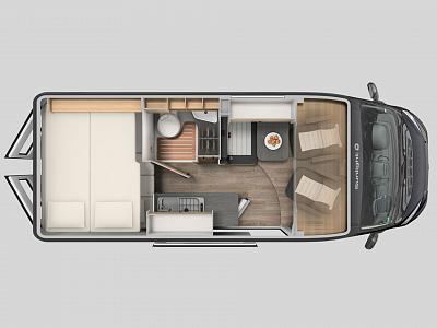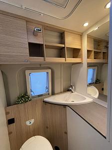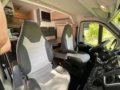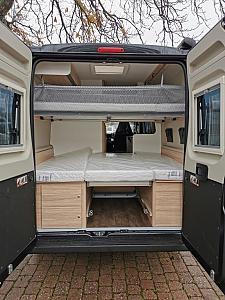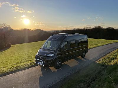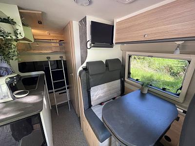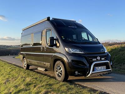 Kompakter Kastenwagen (5,99m) für bis zu 4 Personen. Inkl. Dieselheizung, zwei Aufbaubatterien (2x 95Ah), Kühlschrank mit Gefrierfach, Gasherd, Spüle, Dusche, Waschbecken, WC, Markise, Fahrradträger uvm.