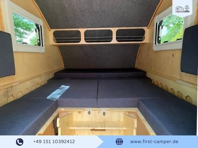 Platzwunder für Familien: Trotz kompakter Maße bietet die umgebaute Liegefläche gemütlich Platz für zwei Erwachsene und ein Kind. Dank des optionalen Kinderbetts zum Einhängen finden sogar bis zu 4 Personen ein Nachtlager.